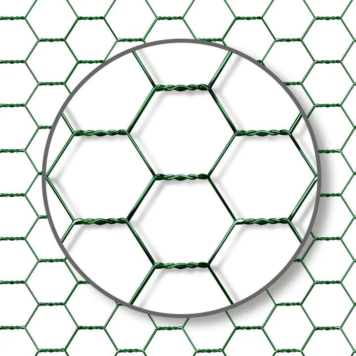 Ideale per piccoli allevamenti o come complemento a un pollaio in legno, questo recinto è dotato di una recinzione a maglie esagonali rivestite in PVC che si integra perfettamente nel vostro giardino. La porta alta offre un accesso facile e sicuro, mentre l'altezza interna ne facilita la manutenzione.